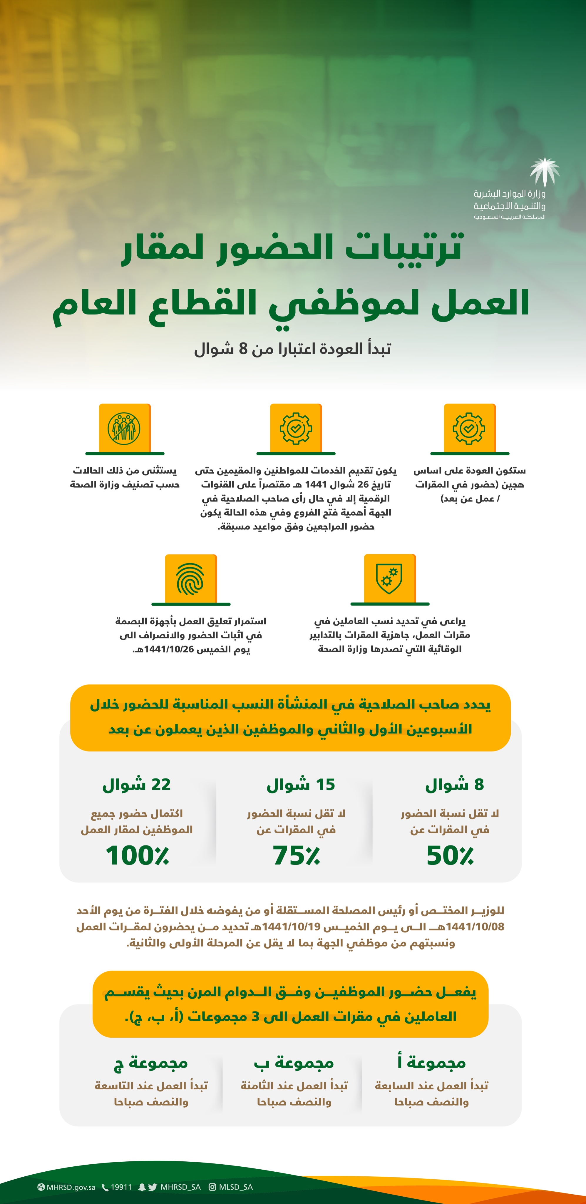 بوابة الموظفين نعود بحذر A Twitter تعميم وزارة الموارد البشرية والتنمية الاجتماعية رقم 8632 وتاريخ 1441 07 21هـ لجميع الوزارات والقطاعات الحكومية بخصوص الإيضاح حول تعليق حضور الموظفين للعمل في الجهات الحكومية لمدة 16 يوما