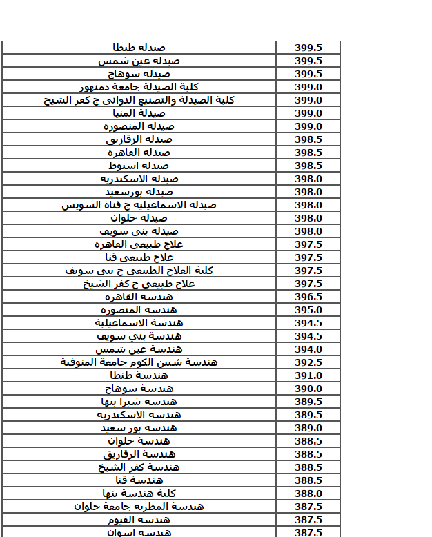 الحد الأدني للقبول بكليات المجموعة العلمية 2018 هندسة بترول 406 درجة وطب المنصورة 405 درجة واسنان طنطا 402 5