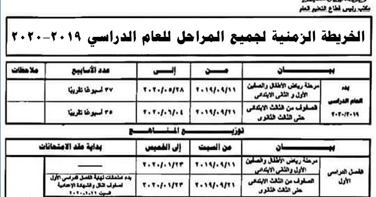 الخريطة الزمنية للعام الدراسي 2020 وزارة التربية والتعليم بمصر مذكرات تعليمية